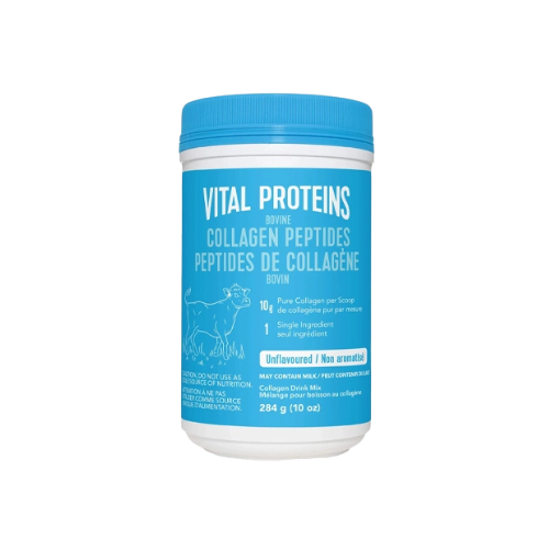 Vital Proteins Bovine Collagen Peptides 284g is made of one single ingredient, hydrolyzed bovine collagen peptides. Each serving contains 10g of Collagen. It enhances overall well-being by promoting strong hair, skin, nails, and bones.